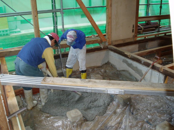 を敷いてからコンクリを流します。